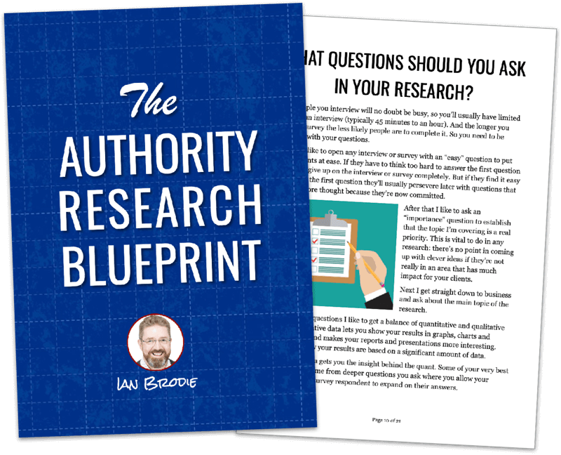 You mustn't abuse the opportunity by turning a research interview into a sales pitch. It won't take long for that to destroy your reputation. But what you'll find is that by asking smart questions as part of your research you'll begin to build your credibility and your interactions with potential clients will start a personal relationship. I've often had clients turn to me at the end of interviews and ask me how I could help them.